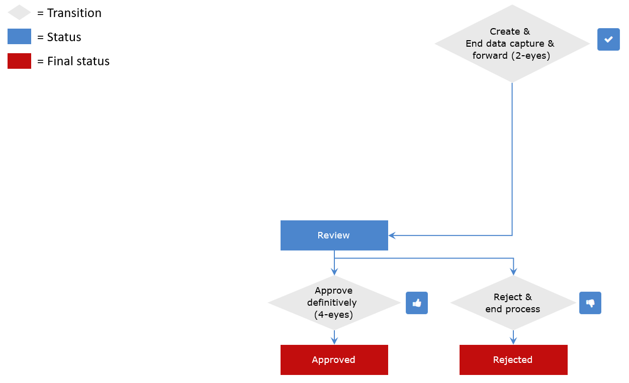 Via configuration, either the basic workflow, which includes all possible status and status transitions, or a simplified workflow, which does not allow post-processing or the rejection of a release task, can be set.