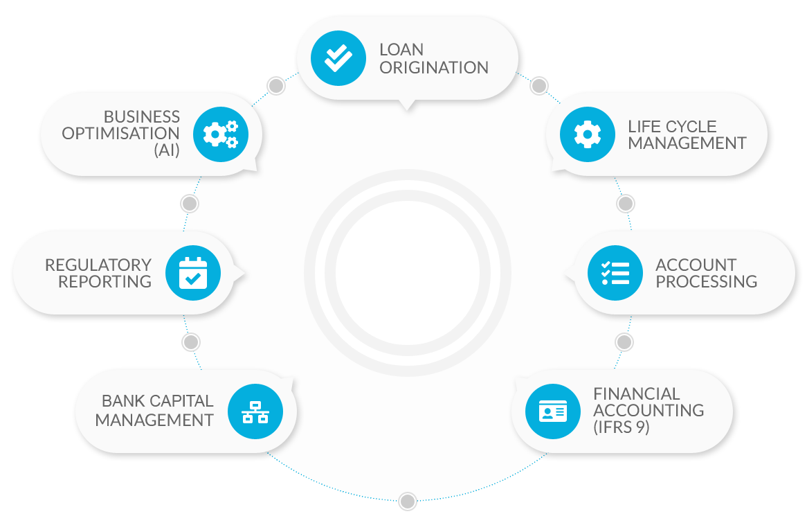 FlexFinance is a component-based solution that covers the entire process chain of lending operations including Loan Origination, Life Cycle Management, Account Processing, Financial Accounting, Bank Capital Management, Regulatory Reporting and Business Optimisation.